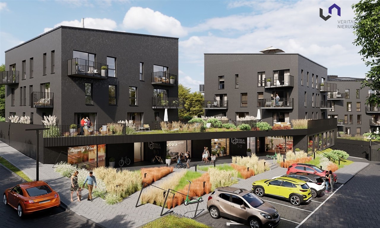 Stacja Ligocka to nowoczesne osiedle, składające się z 4 budynków wielorodzinnych, które harmonijnie wpisują w otaczającą zieleń i charakteryzują się przemyślaną, funkcjonalną architekturą. Kształt budynków nawiązuje do brył węgla, a czarna kolorystyka elewacji dodatkowo podkreśla ten unikalny klimat. Integralną częścią inwestycji są kaskadowe tereny zielone, strefy wypoczynkowe oraz nowoczesny plac zabaw dla dzieci - to wszystko tworzy przyjazne i komfortowe środowisko dla przyszłych mieszkańców.