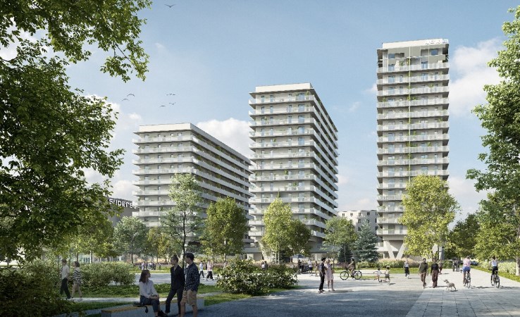 Nowoczesny superbudynek, złożony z trzech kaskadowych tarasowców z otwartym, miejskim parterem, wygodnymi apartamentami i balkonami pod centralnym adresem w mieście.